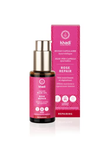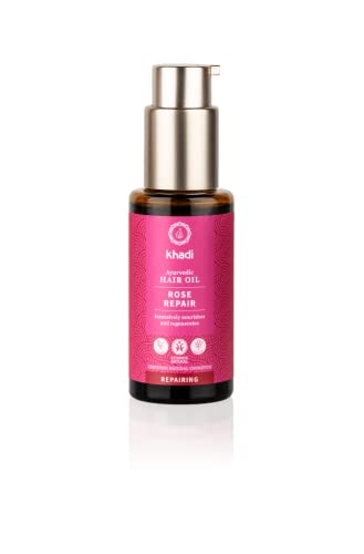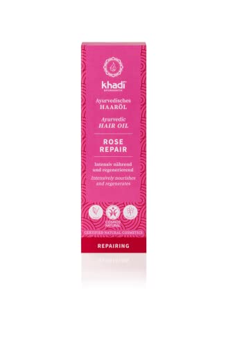 khadi Rose Repair Haarolie, 100% natuurlijk, plantaardig & veganistisch, intensieve behandeling & regeneratie voor beschadigd, droog haar & gespleten haarpunten, siliconenvrij, Ayurvedische haarverzorging, biologische natuurlijke cosmetica, 50 ml