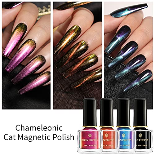 [Dubbel perfect effect]: Born Pretty magnetische nagellakset met magneet, ze hebben niet alleen een 3D-kattenoogeffect, maar ook een kameleonkleur, die een dubbel perfect effect bereikt