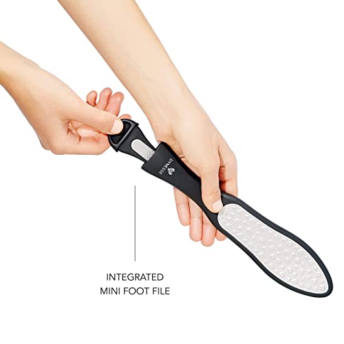 Premium laser hoornhuid trasp incl. mini eeltvijl van DYNESSE. Eelt verwijderaar met ergonomische anti-slip greep. Roestvrij stalen voetvijl, voetrasp voor pedicure en voetverzorging. Eelt schaaf