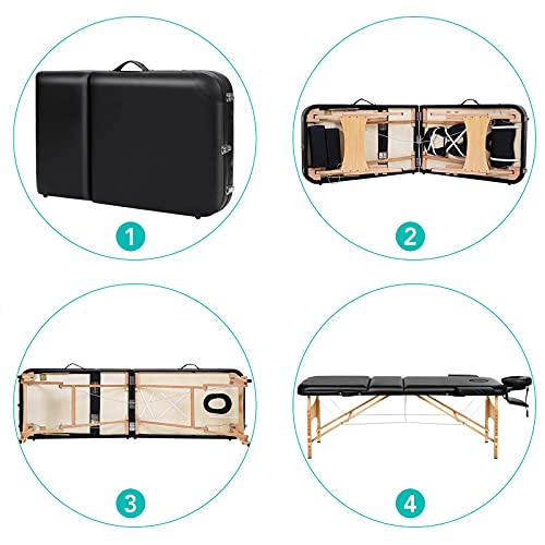 Massageligstoel, spa bed, massagetafel, 3 delen, draagbaar, in hoogte verstelbare houten poten, eenvoudige installatie, ergonomische hoofdsteun met draagtas, tattoo salon gezichtsverzorging