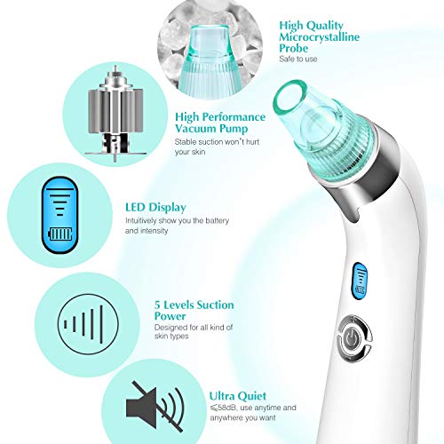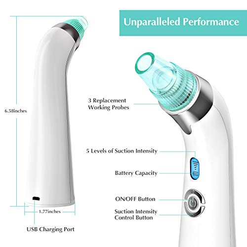 Specification: Mee-eterverwijderaar, poriënreiniger, vacuümzuiger, mee-eterverwijderaar, USB-poort, 5 instelbare zuigkracht, puistjeszuiger, elektrisch met 4 verwisselbare opzetstukken